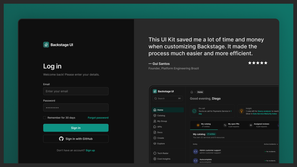 Tired of wasting hundreds of hours thinking about how to style the interface of your internal development platform? The Backstage UI Kit is packed with everything you need to create modern, beautiful UIs.