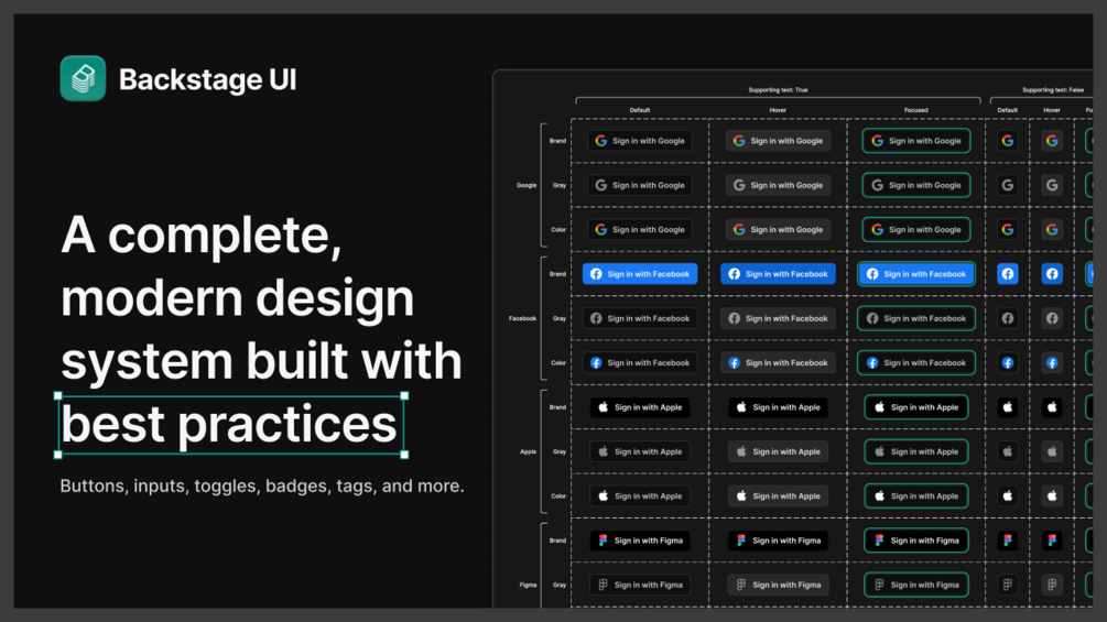 Backstage UI Kit is the best Figma UI kit and design system for Backstage. Kickstart any project, save hundreds of hours, and level up as a platform designer.